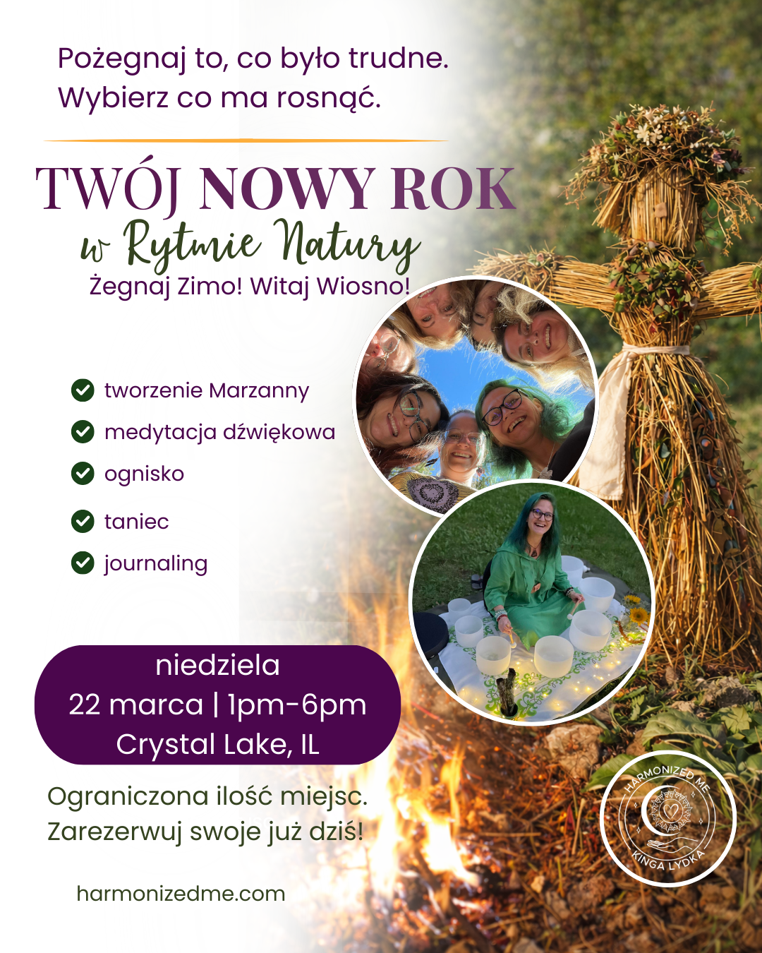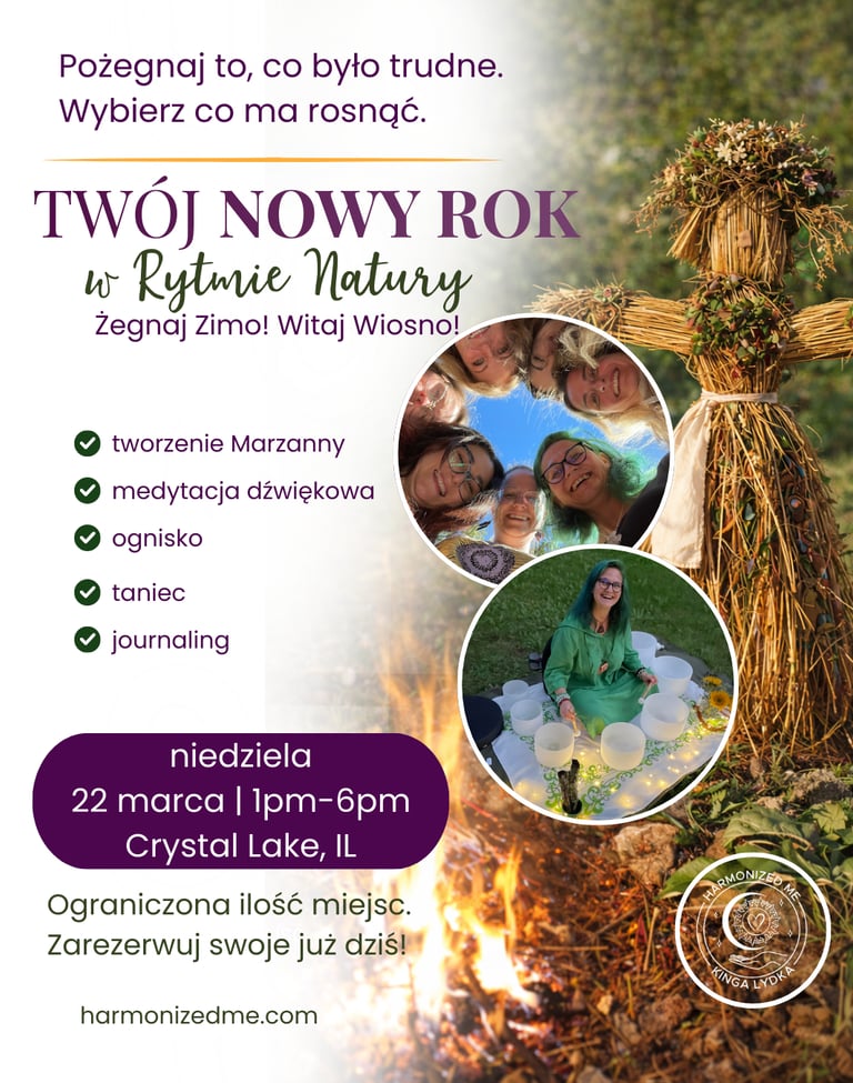 Później zasiejesz to, co ma w Tobie rosnąć. Nazwiesz to. Zapiszesz. Poczujesz w ciele. Będzie journaling, medytacja, dźwiękoterapia, taniec. Trochę ciszy, trochę śmiechu, może trochę łez, jeśli poczujesz, że są potrzebne.